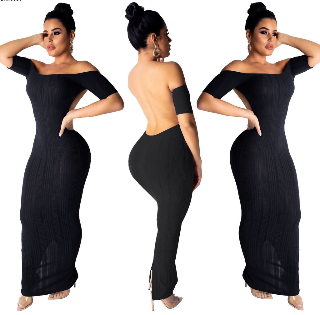 Gender: Women Material: Acrylic Style: Sexy & Club Silhouette: Pencil Pattern Type: Solid Sleeve Length(cm): Short Dresses Length: Ankle-Length Sleeve Style: Off the Shoulders Waistline: Empire Season: Summer